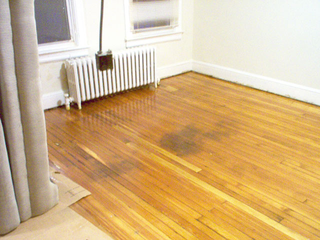 | The floor, after it was refinished. A couple old stains in the floor add "character" |