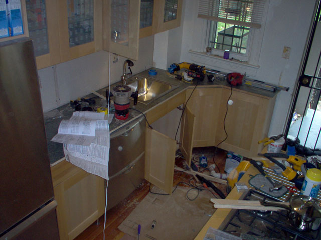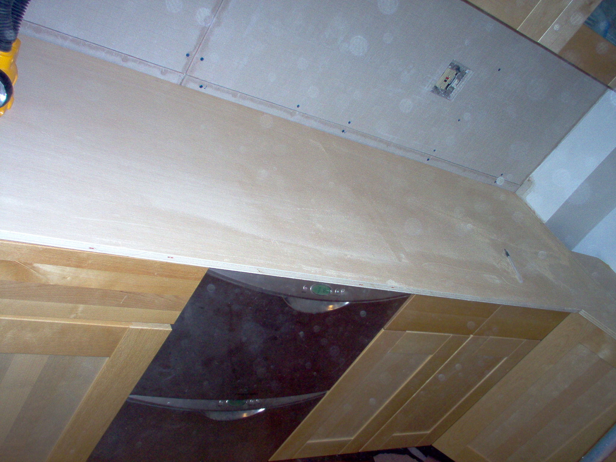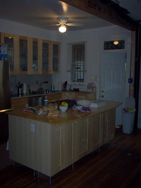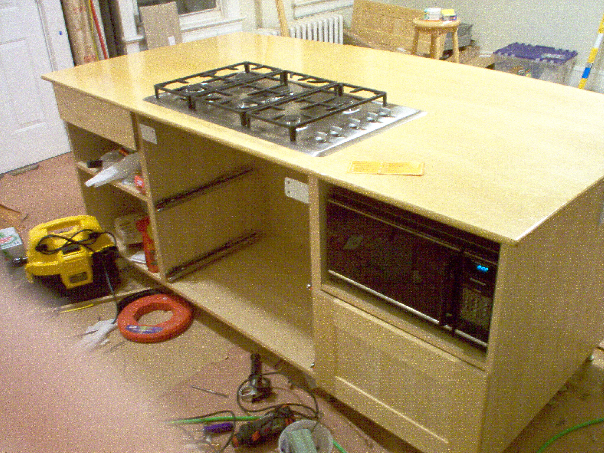 3/28/2004 The counter top has been finished, gas and electricity run, and cooktop installed. |