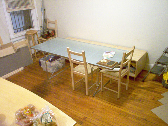 9/6/2004 Tile has been grouted and pendant lighting temporarily installed. |